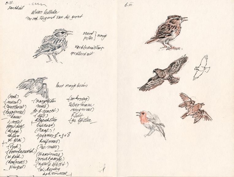 Een paar krabbeltjes, wat vlekjes aquarelverf, en toch helemaal mus. Helemaal Peter Vos | De Volkskrant